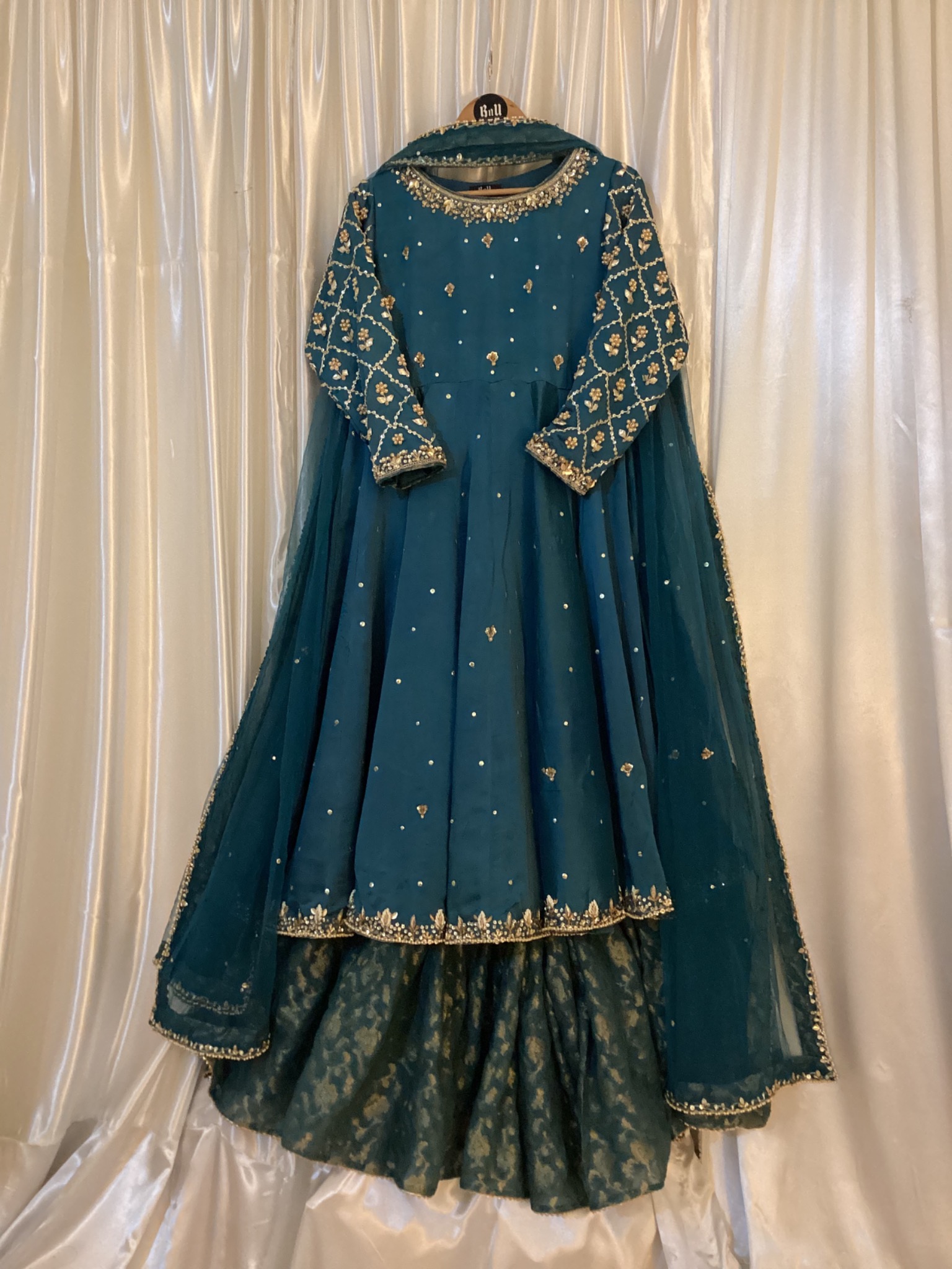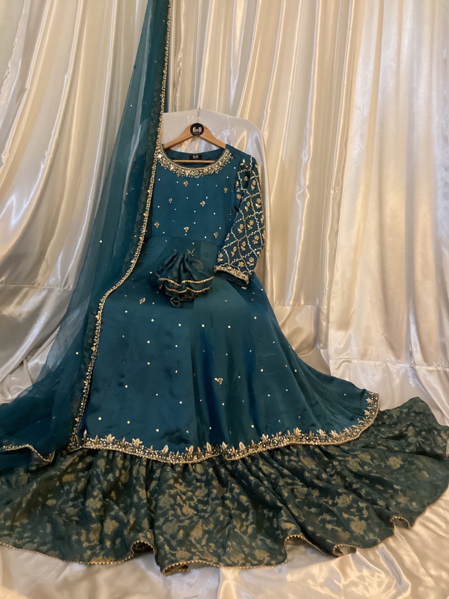 Lehenga Fabric: Silk lehnga with pure banarsi chiffon frill