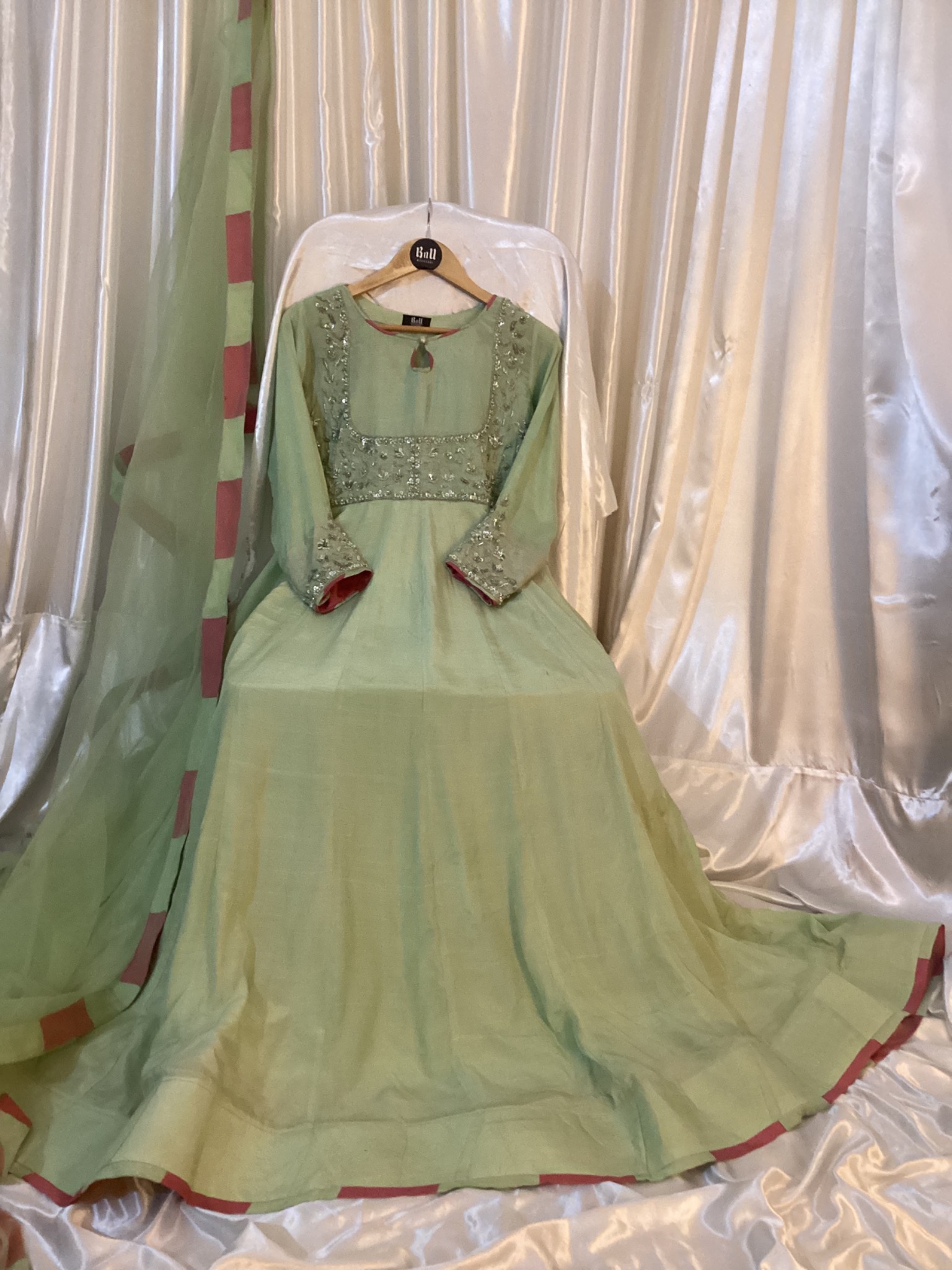 Pure Raw Silk maxi with hand embellished work on yoke and sleeves, with net dupata and raw silk Trouser