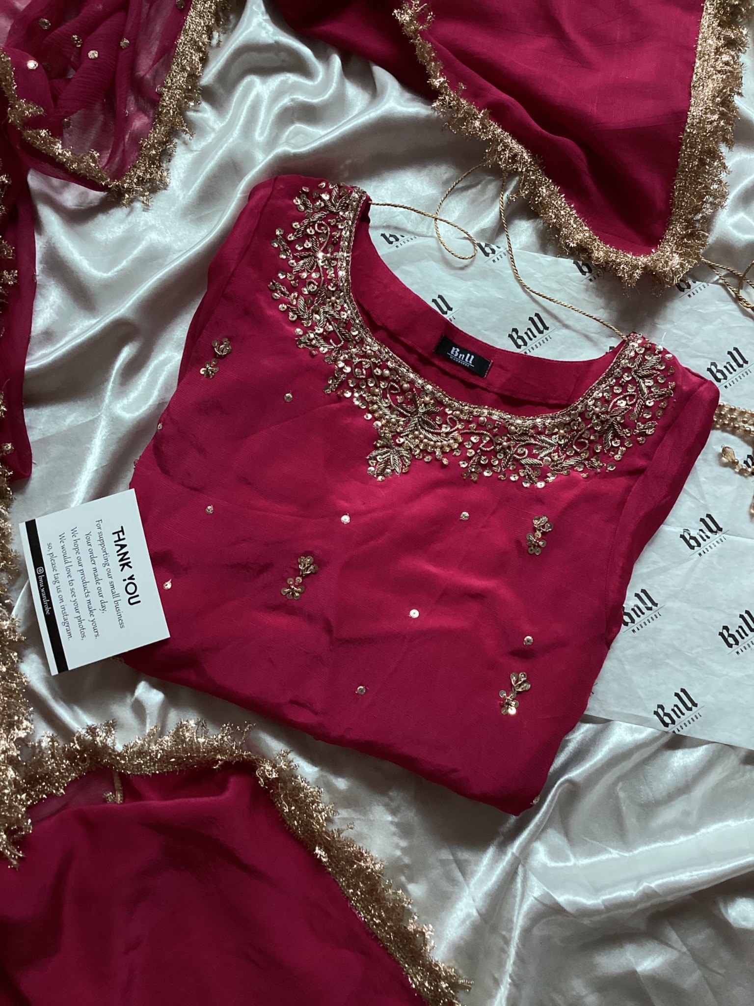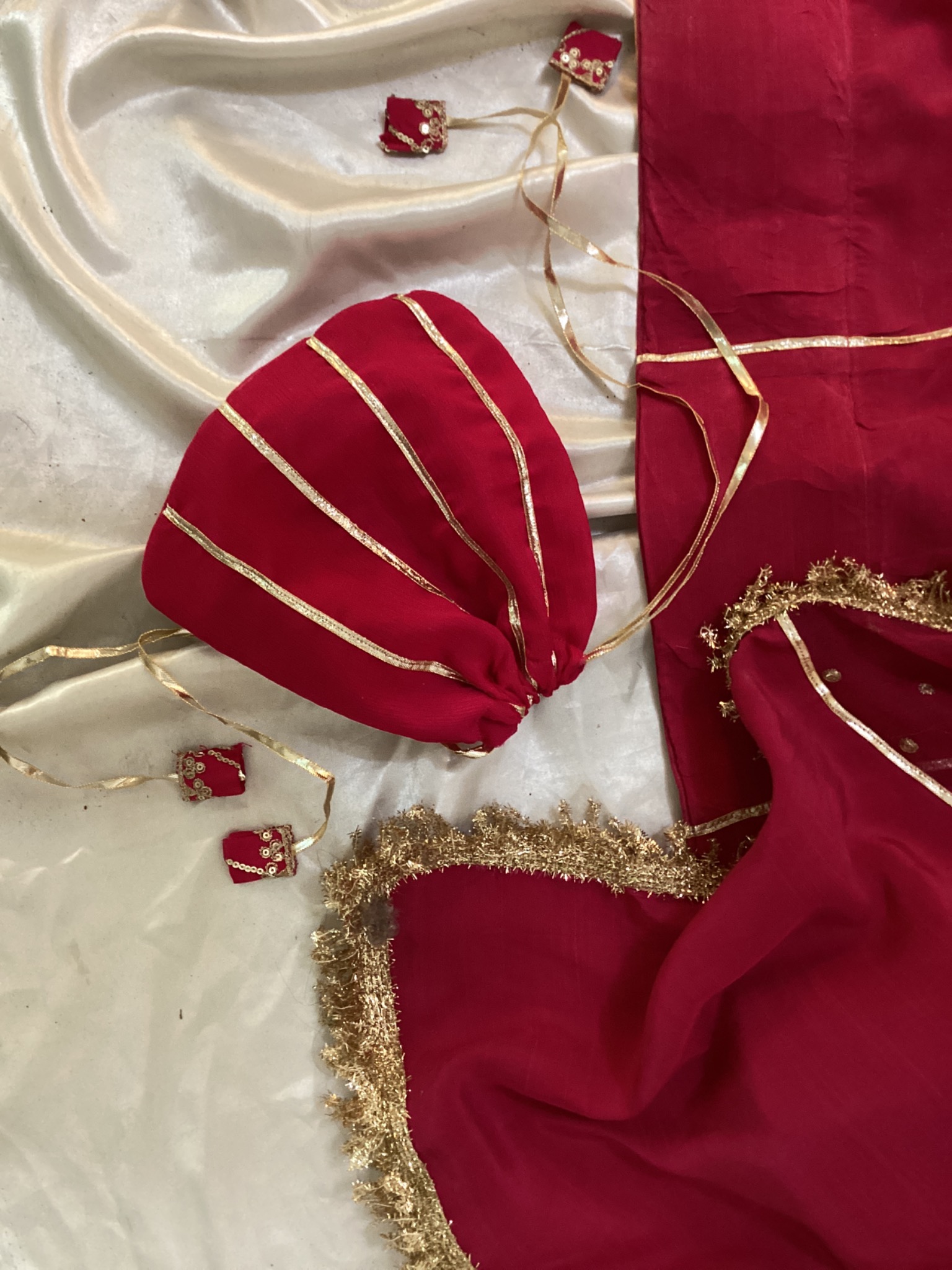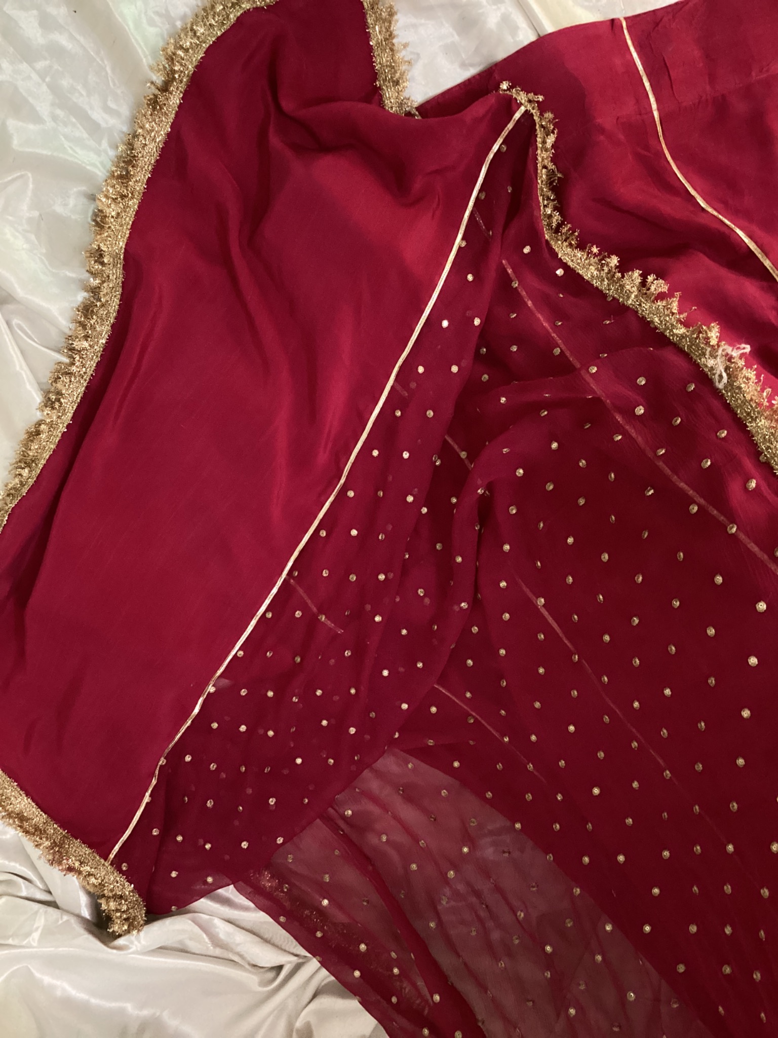 Fabric: Pure Raw Silk Lehnga choli made of pure Raw silk fabric with hand embellishment on choli and Dupata is on Pure self embordered chiffon dupata With 300-350 inches flare lehnga with gifted Potli bag and attached Cancan