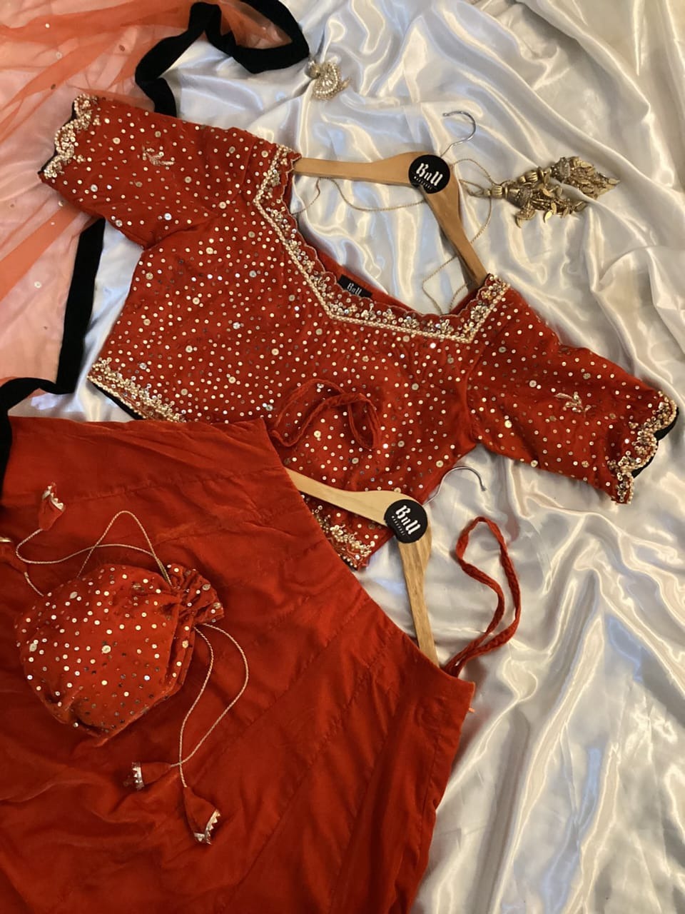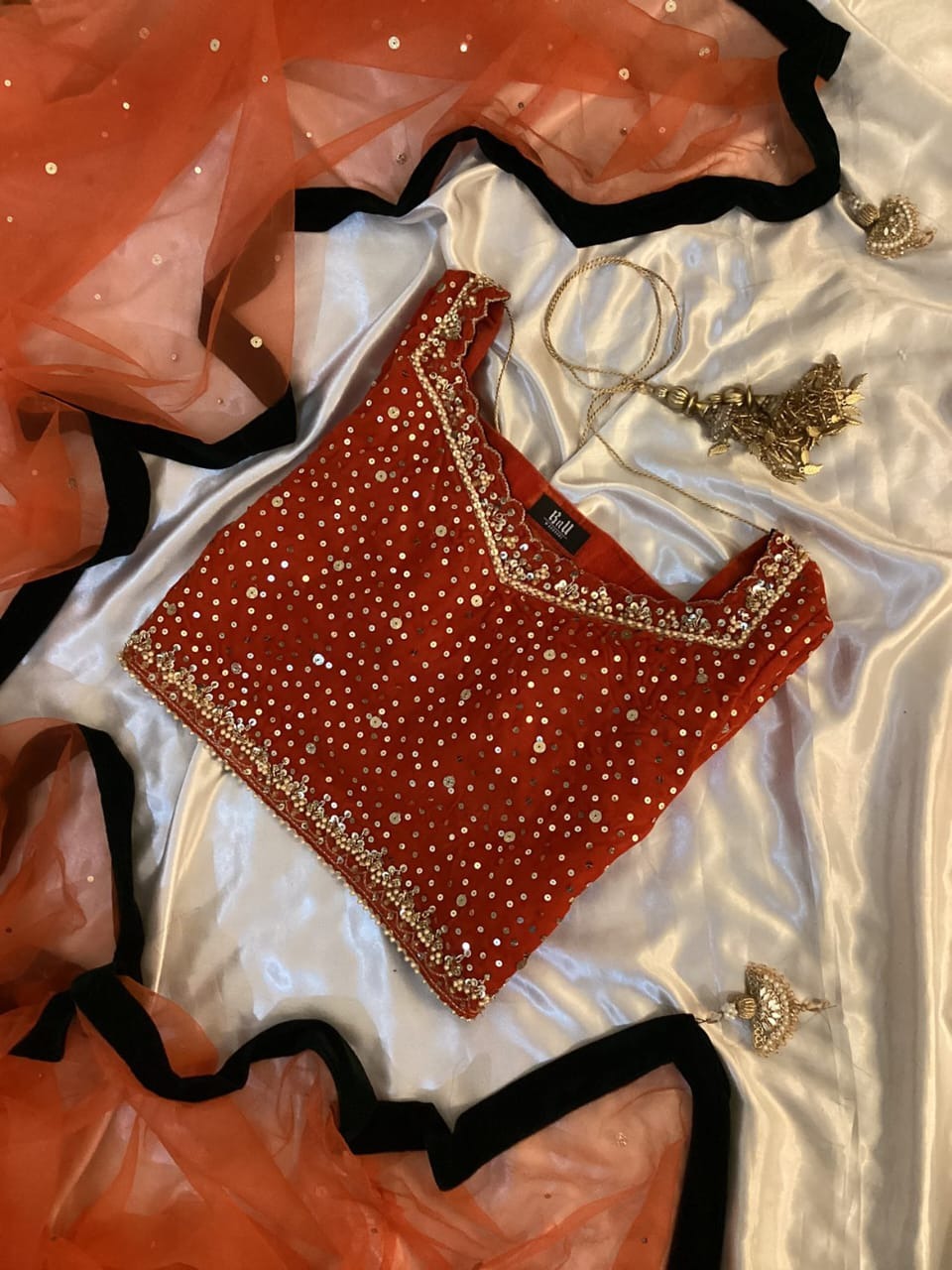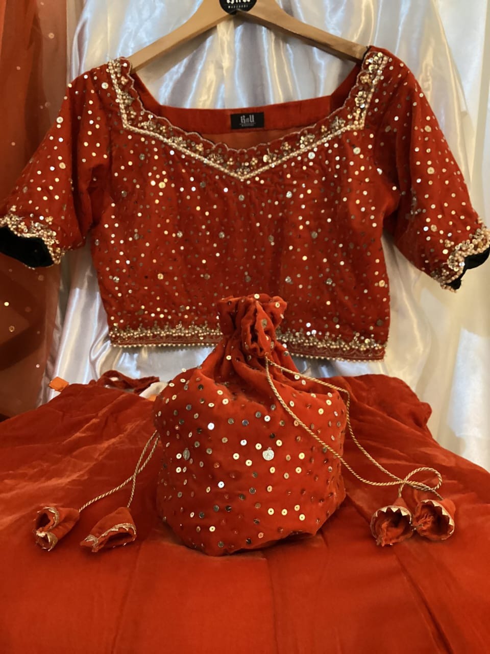 Maxi Fabric: Velvet fabric with hand embellished Choli and attached tussles, with Velvet lehenga