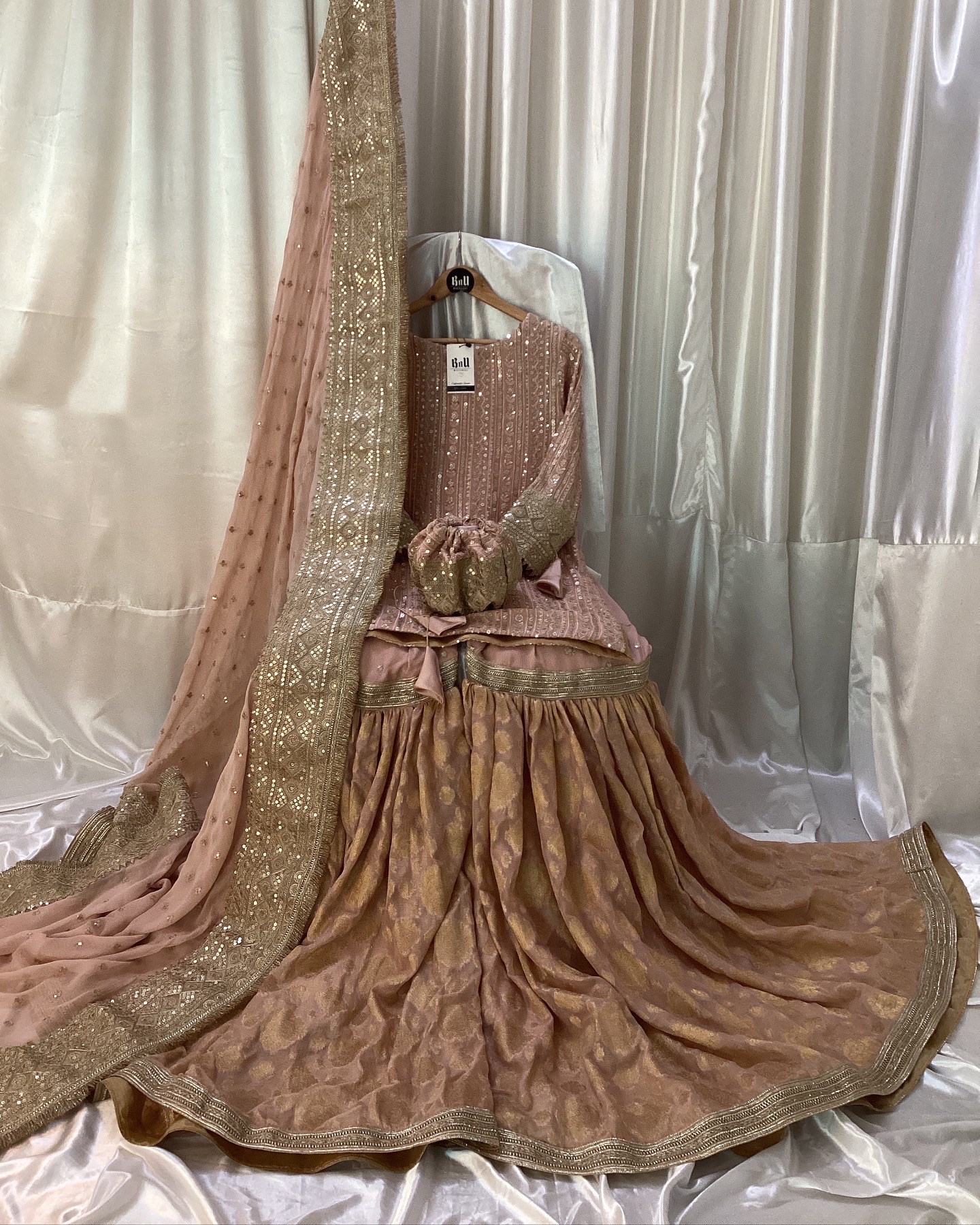 Fabric: Shirt is on pure Chiffon fabric with pure banarsi chiffon gharara with laces with Potli bag, dupata is on Chiffon fabric with indian laces and tussels