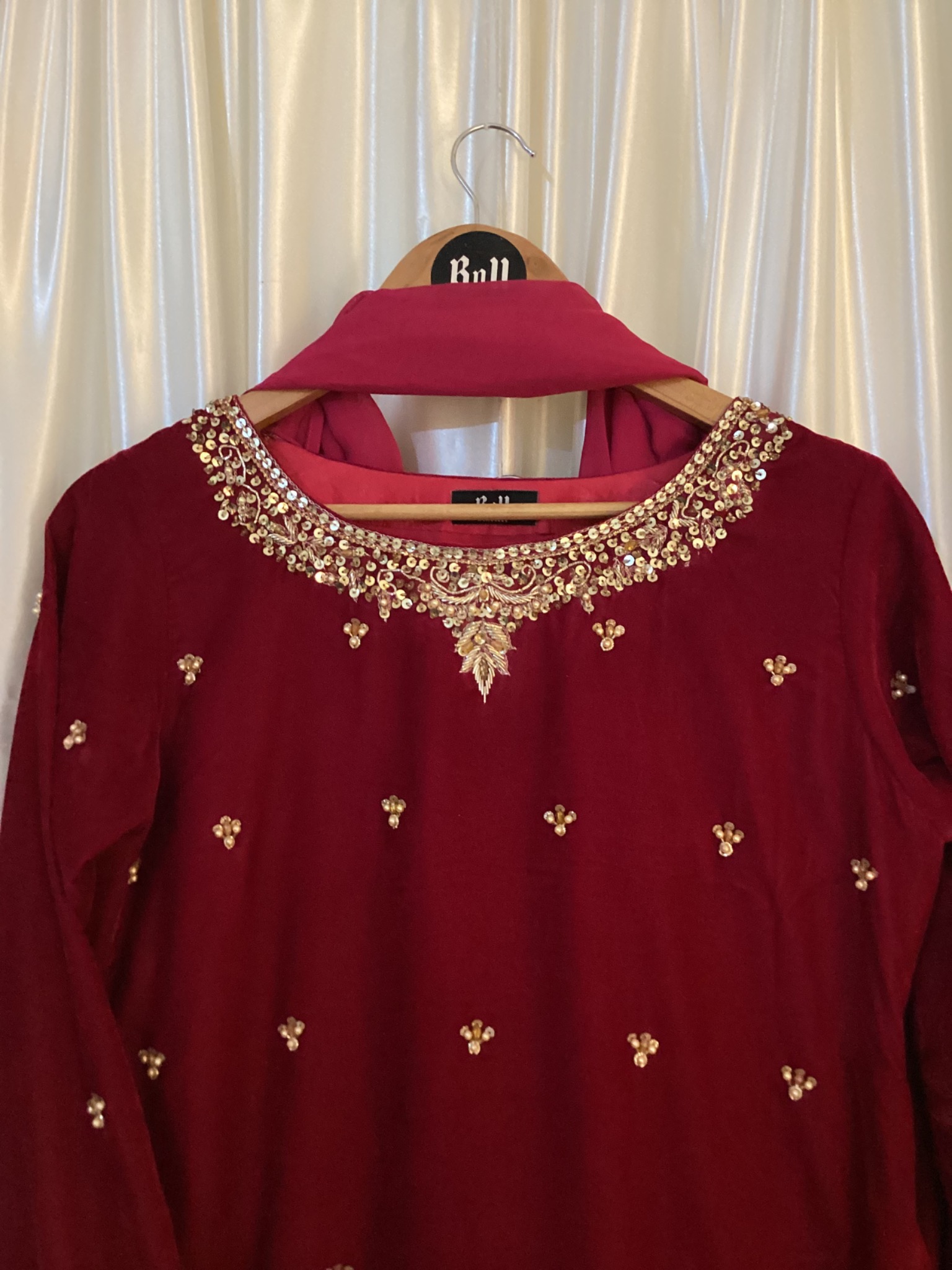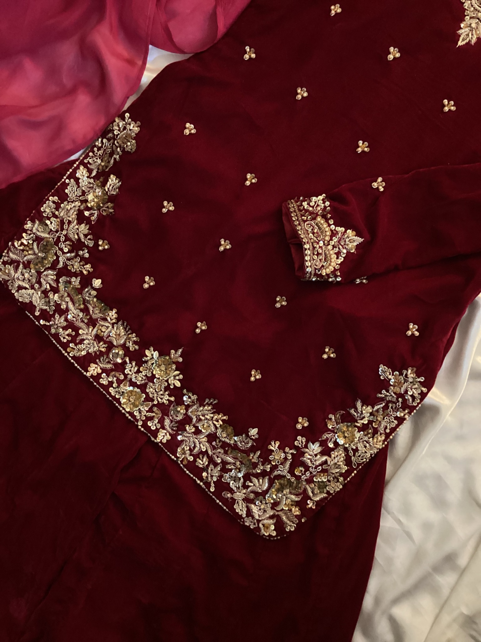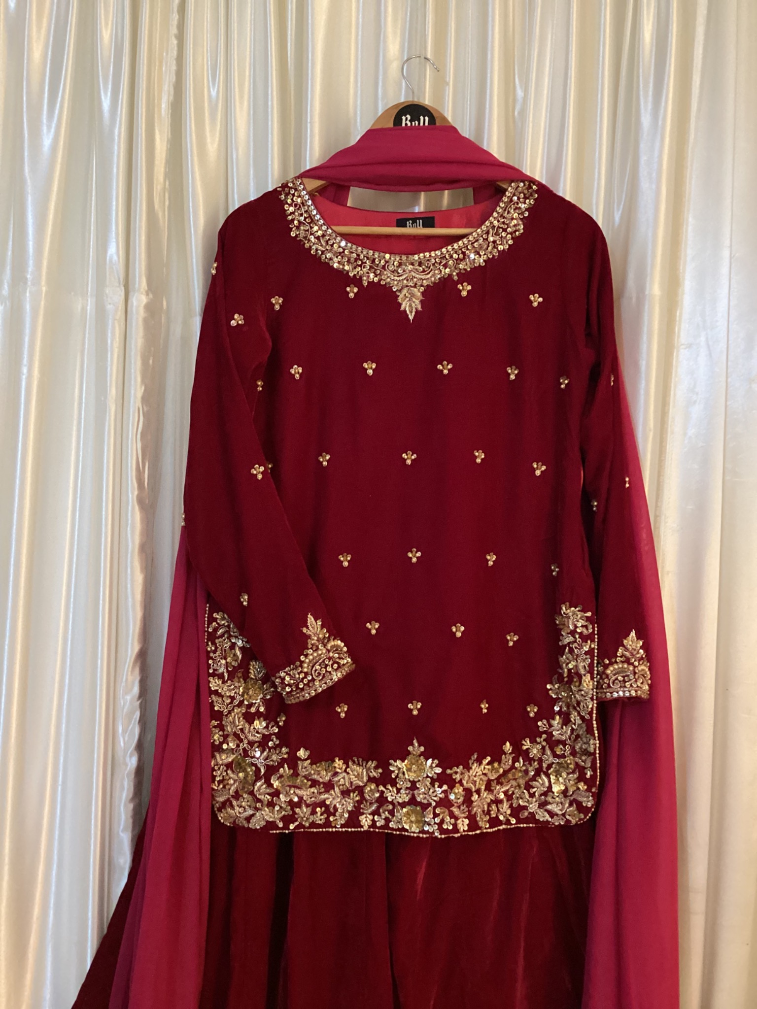 Velvet article with hand embellished (Dapka Work) shirt with kalidar velvet sharara and Pure Silk Dupata